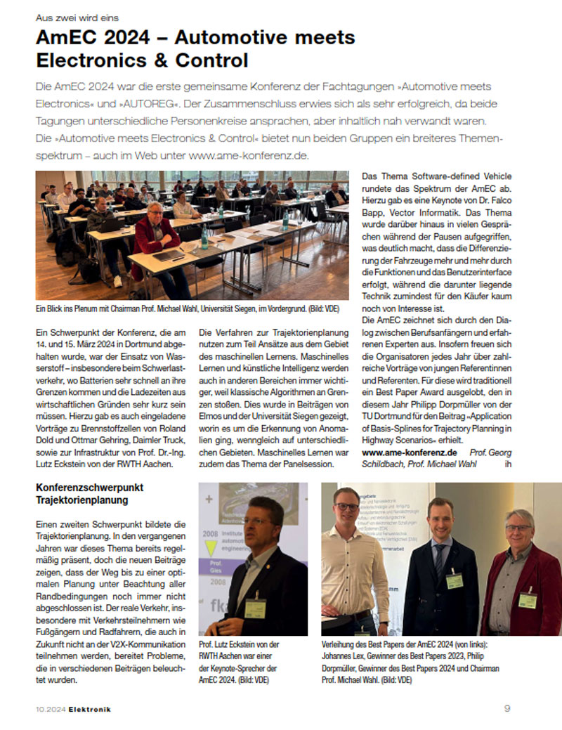 Proceedings AmEC 2024: GMM-Fachbericht 108Automotive meets Electronics & Control, 15. GMM-Symposium, Dortmund, March 14 - 15, 2024E-Book: ISBN 978-3-8007-6285-9